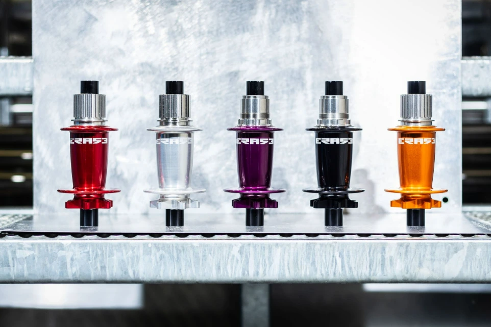 Nous anodisons les pièces en aluminium 7075 dans nos cinq couleurs standards sans MOQ. Des couleurs sur mesures sont aussi possibles avec MOQ. Nous réalisons aussi l'anodisation type 3 (colorée) du titane.